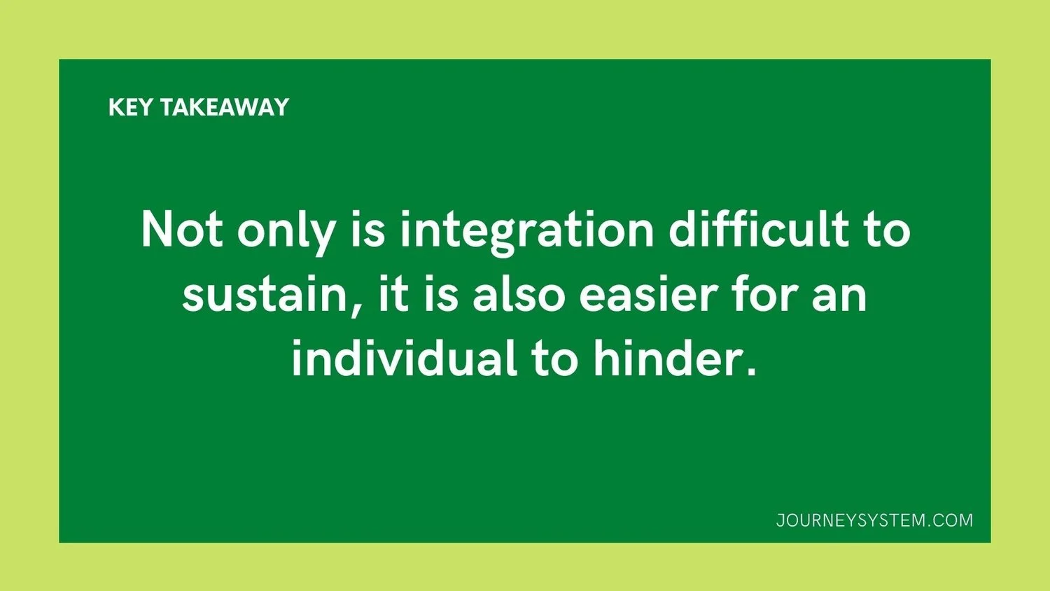 Not only is integration difficult to sustain, it is also easier for an individual to hinder.